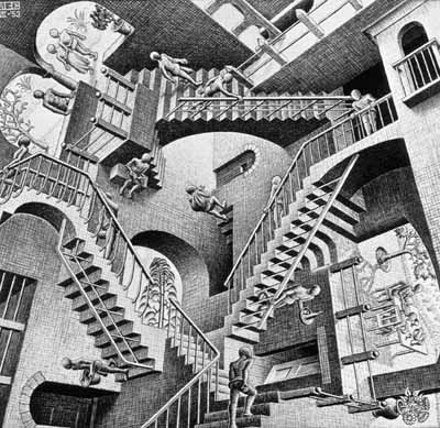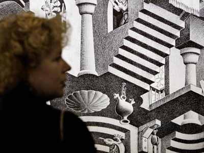 M. C. Escher is known for his often mathematically-inspired woodcuts, lithographs, and mezzotints. These feature impossible constructions, explorations of infinity, architecture, and tessellations. Some of his work follows the patterns of Sacred Geometry.