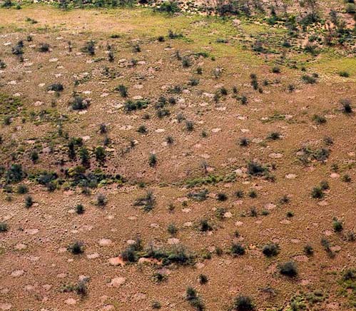 Unusual bare circles in the grasslands of Australia and the Namib Desert called "fairy circles" aren't the work of termites, new research suggests. Fairy circles are a long-standing mystery. Some scientists have argued that they mark termite nests or are the result of plants competing for scarce resources. Some say that a combination of termite and plant activity resulted in the odd splotches. But now, a new study suggests that the circles aren't the result of anything living. Rather, they're a result of weathering caused by heavy rainfall and evaporation.