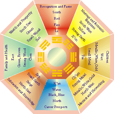 Each of these Aspirations is symbolized in the octagonal shaped Pa Kua, one of the most basic Feng Shui tools, which identifies where the particular Aspirational locations lie in your home or workplace, allowing you to energize them as required.