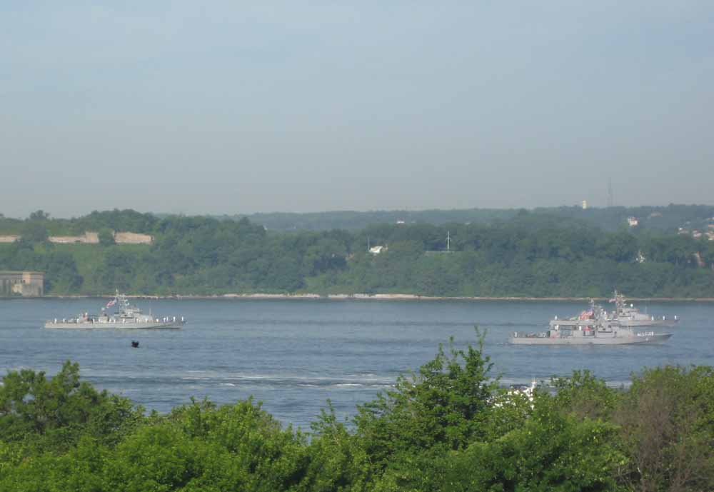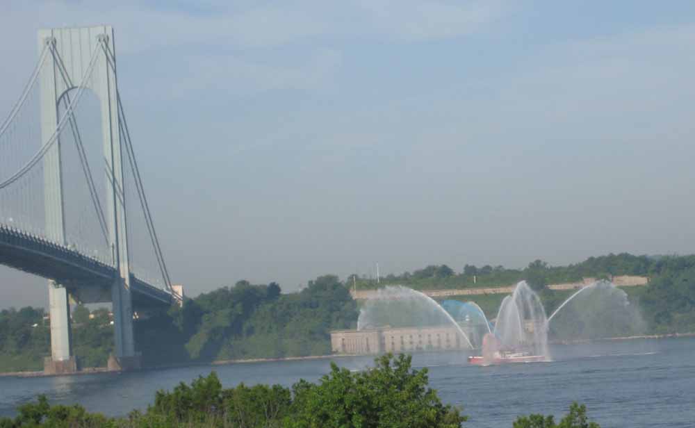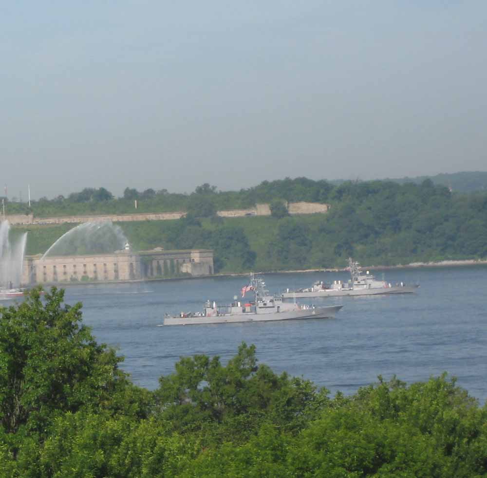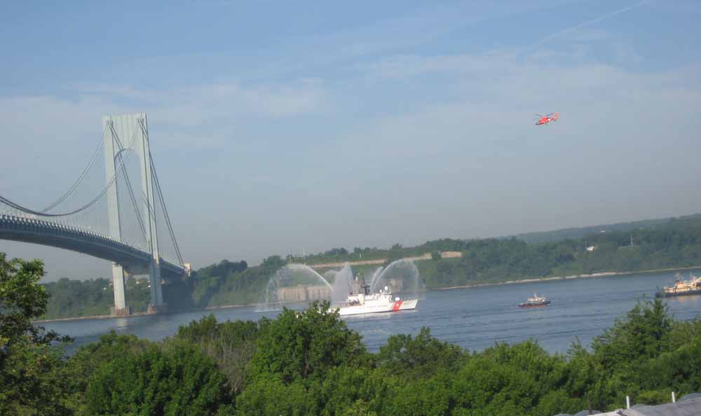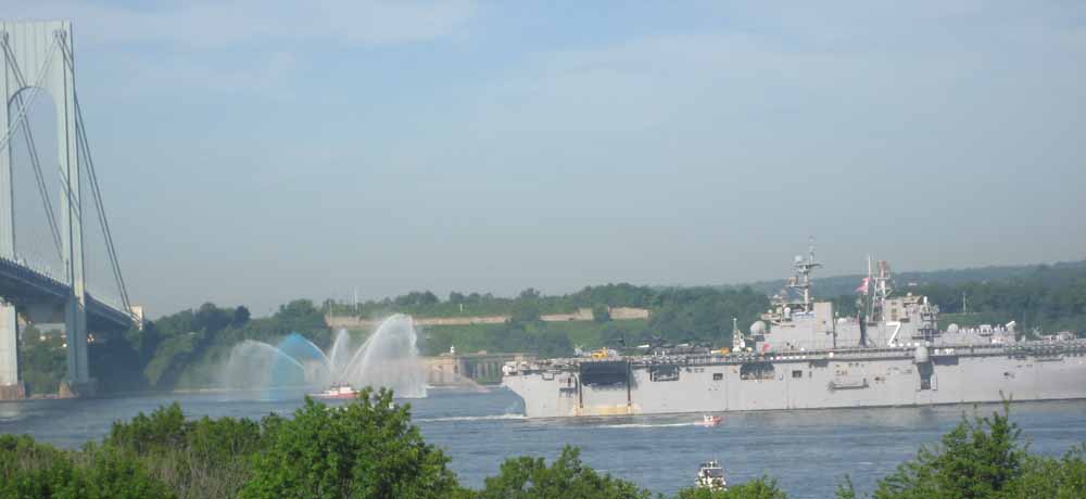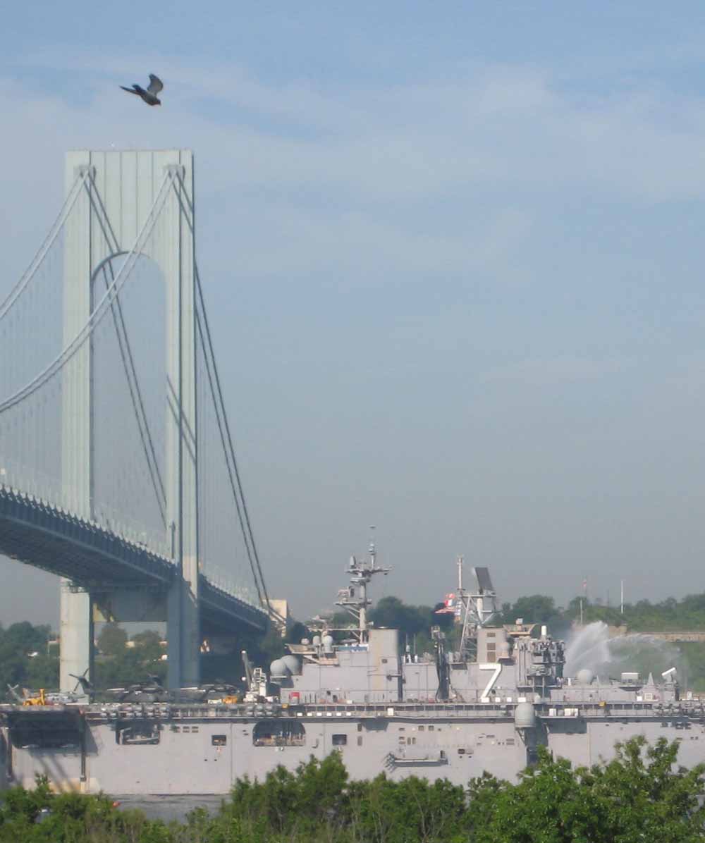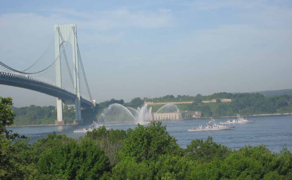 I grabbed my camera, raced out to my terrace in time to photograph the annual Parade of Ships as they passed under the Verrazano Bridge on their way to New York Harbor at the start of Fleet Week.