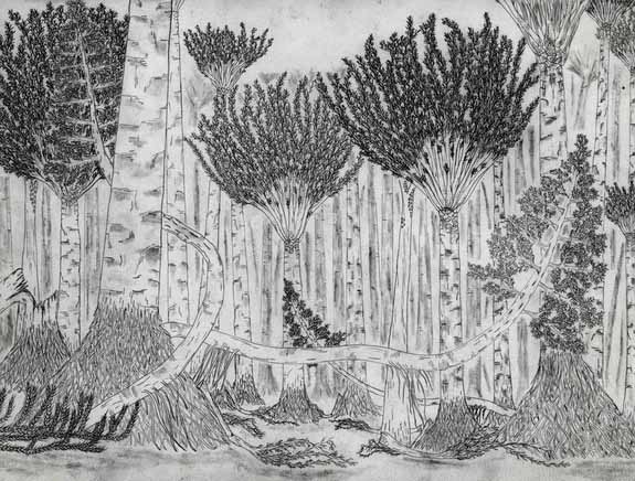 One of the earliest forests in the world was home to towering palmlike trees and woody plants that crept along the ground like vines, a new fossil find reveals. The forest, which stood in what is now Gilboa, N.Y., was first unearthed in a quarry in the 1920s. But now, a new construction project has revealed for the first time the forest floor as it stood 380 million years ago in the Devonian period.
