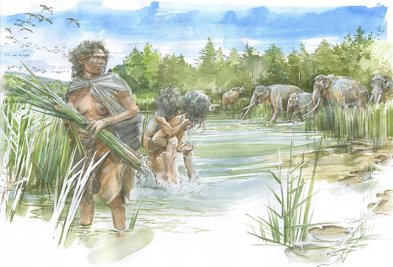 Around 300,000 years ago, a family of early humans visited a lake bordered by open forest. We don't know if they came there to drink, swim, or forage, but hunting the herds of giant beasts found there was probably not on their agenda. Their footprints not only record their presence, but place them in an ecosystem we can reconstruct from other clues.