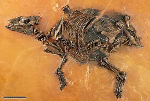 A fossilized fetus belonging to an early relative of the horse has been described by scientists. The unborn foal was identified among the remains of its mother - a 48-million-year-old horse-like animal found in Germany's Messel pit in 2000. The mare probably fell into a lake shortly before birth - which led to outstanding preservation of the soft tissue from the fetus.