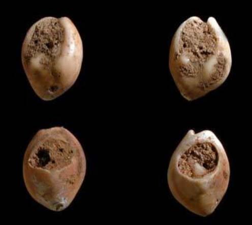 The earliest known pieces of jewelry made by modern humans have been identified by scientists. The three shell beads are between 90,000 and 100,000 years old, according to an international research team. Two of the ancient beads come from Skhul Cave on the slopes of Mount Carmel in Israel. The other comes from the site of Oued Djebbana in Algeria. The finds, which pre-date other ancient examples by 25,000 years. The pea-sized items all have similar holes which would have allowed them to be strung together into a necklace or bracelet, the researchers believe.
