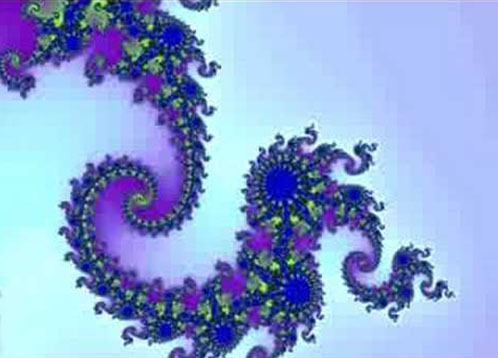 A fractal is a never-ending pattern. Fractals are infinitely complex patterns that are self-similar across different scales. They are created by repeating a simple process over and over in an ongoing feedback loop. Driven by recursion, fractals are images of dynamic systems - the pictures of Chaos. Geometrically, they exist in between our familiar dimensions. Fractal patterns are extremely familiar, since nature is full of fractals. For instance: trees, rivers, coastlines, mountains, clouds, seashells, hurricanes, etc. Abstract fractals - such as the Mandelbrot Set - can be generated by a computer calculating a simple equation over and over.
