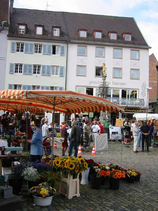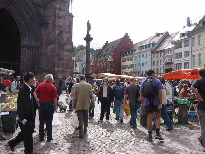 The streets are made of cobblestone, the city very clean. There are buildings ancient and new as in most cities, that speak of their history. Lots of places to visit and things to do. There were many vendors outside featuring food and other wares. Freiburg was a wonderful mix of energies as tourists from different countries were visiting on holiday. Pat and I spend much of the day sightseeing in the city, shopping, eating at an outdoor cafe, the food is excellent, and stopping at an Internet Cafe to check our email.