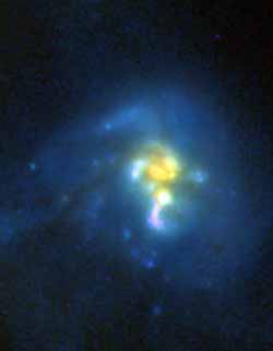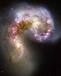 Interacting Galaxy or Colliding Galaxies are the result of one galaxy's gravity disturbing another galaxy.