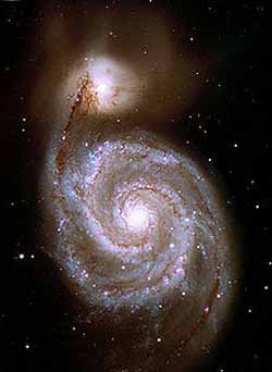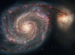 The Whirlpool Galaxy is an interacting grand-designspiral galaxy located at a distance of approximately 23 million light-years in the constellation Canes Venatici.