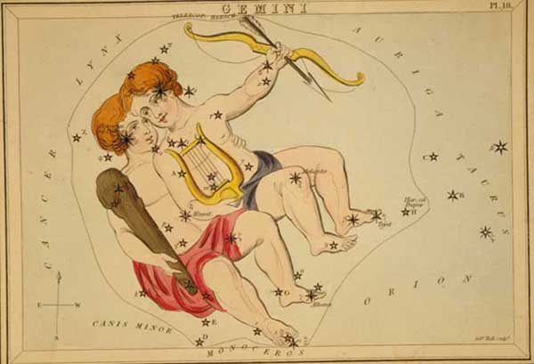 As one of the most prominent zodiacal constellation, Gemini actually looks like its namesake. This brilliant constellation can be seen rising in the east during the long winter evenings of December, and by the frosty early hours of the morning, is virtually overhead.