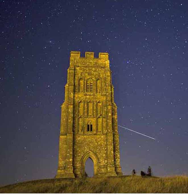 Perhaps the most intriguing of all Glastonbury's mysteries are the strange balls of colored lights frequently seen spiraling around the Tor. In 1970, a local police officer reported seeing eight egg-shaped objects "dark maroon in color, hovering in formation over the hill" and in 1980 a witness saw "several green and mauve lights hovering around the tower, some smaller than others, about the size of beachballs and footballs.