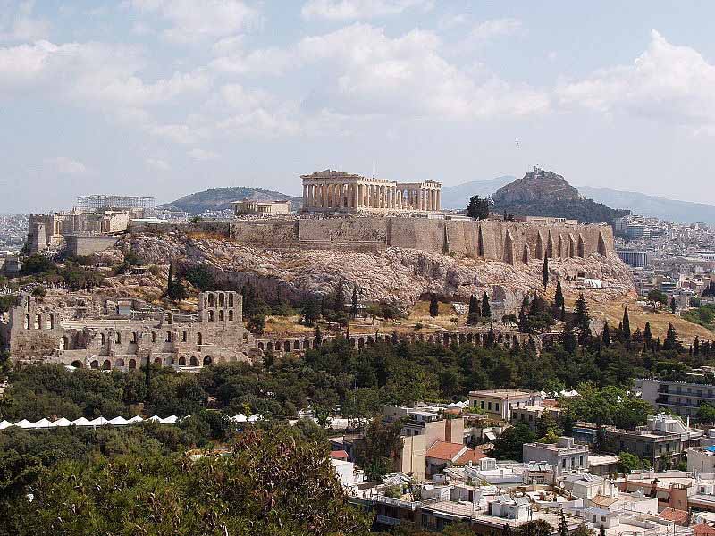 The Parthenon, the Temple to the Goddess Athena on the Acropolis in Athens, is the epitome of what Nikolaus Pevsner called "the most perfect example ever achieved of architecture finding its fulfillment in bodily beauty". Helen Gardner refers to its "unsurpassable excellence", to be surveyed, studied and emulated by architects of later ages. Yet, as Gardner points out, there is hardly a straight line in the building.