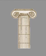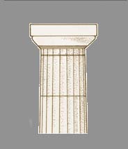 The columns are fluted with narrow, shallow flutes that do not meet at a sharp edge but have a flat band or fillet between them. The usual number of flutes is twenty-four but there may be as many as forty-four. The base has two convex mouldings called torus, and from the late Hellenic period stood on a square plinth similar to the abacus.