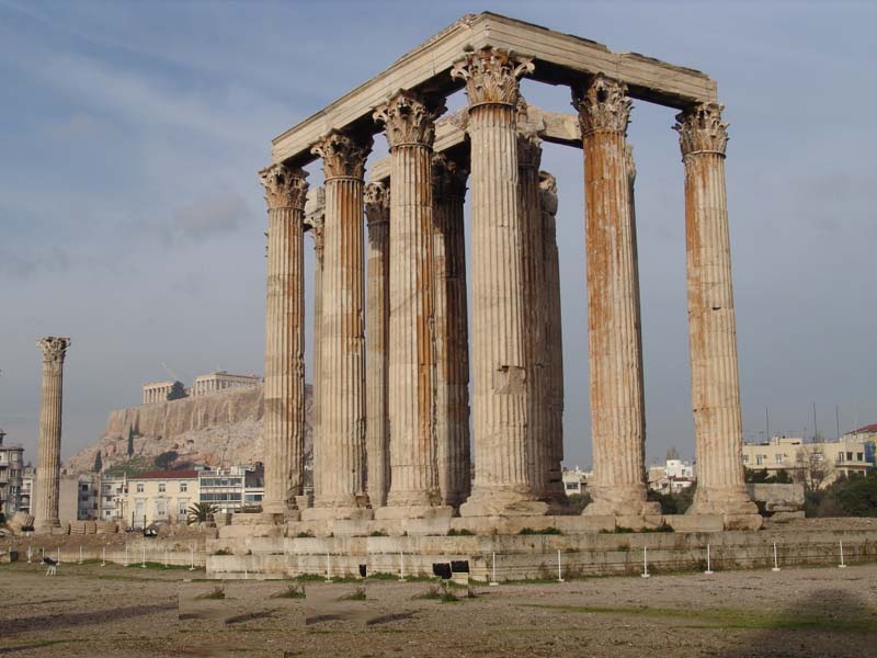 A few of these temples are very large, with several, such as the Temple of Zeus Olympus and the Olympieion at Athens being well over 300 feet in length, but most were less than half this size. It appears that some of the large temples began as wooden constructions in which the columns were replaced piecemeal as stone became available. This, at least was the interpretation of the historian Pausanias looking at the Temple of Hera at Olympia in the 2nd century AD.