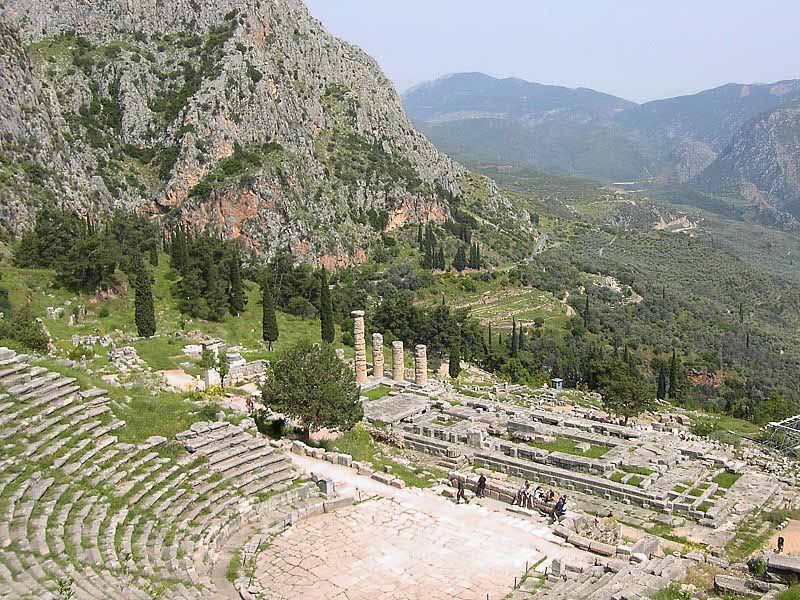 Theatre and Temple of Apollo in mountainous country at Delphi