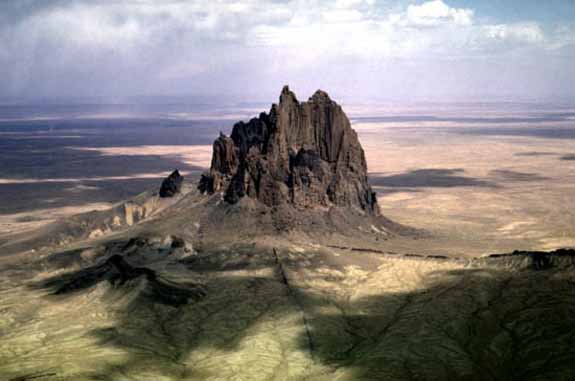 Shiprock, or Shiprock Peak or Ship Rock (winged rock) is a rock formation rising nearly 1,800 feet (550 m) above the high-desert plain on the Navajo reservation, about 12 miles (19 km) southwest of the northern New Mexico town of Shiprock, which is named for the peak.