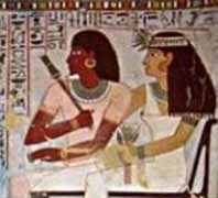 In ancient Egypt head hair was often shaved, especially amongst children, as long hair was uncomfortable in the heat. Children were often left with a long lock of hair growing from one part of their heads, the practice being so common that it became the standard in Egyptian art for artists to depict children as always wearing this "sidelock". Many adult men and women kept their heads permanently shaved for comfort in the heat and to keep the head free of lice, while wearing a wig in public. In their graves we find combs and hairpins. They thought thick hair was best and used hair extensions and wigs made of real hair or sheep's wool. They dyed their hair and wigs a variety of colors with blues, greens, blondes and gold colors being among the preferred colors though black wigs hued by indigo were the favorite. Wealthy Egyptians had personal barbers who would come to their homes. They also used cosmetics and body oils. Women's wigs were often long and braided, adorned with gold ornaments or ivory hairpins. Men's faces were generally clean shaved, but stiff false beards were sometimes worn.