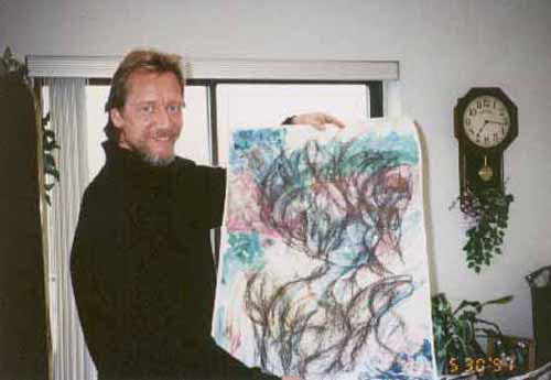 In May 1997 - (6 weeks before Stargate SG1 debuted) - a friend and visionary artist from the Netherlands named Steve Soeten came for a visit. Steve brought two drawings he created representing the way he saw me. They never made sense until today when I saw the dark matter image above. Dark matter - dark energy - manifestation of a simulation through a black hole.