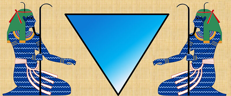 Hapi (Hep, Hap, Hapy) was a bearded man often seen in the color blue or green, with female breasts, indicating his powers of nourishment. Hapi was one of the Four sons of Horus depicted in funerary literature as protecting the throne of Osiris in the Underworld.
