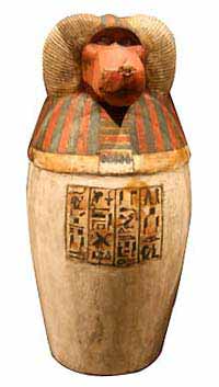 Hapi is sometimes depicted as a baboon-headed mummified human on funerary furniture and especially the canopic jars that held the organs of the deceased. Hapi's jar held the lungs. Hapi was also the protector of the North. Hapi was assigned to a tutelary protective goddess Nephthys.