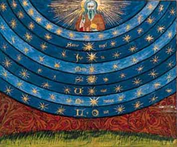 Some late medieval figures inverted the model of the celestial spheres to place God at the center and the Earth at the periphery. Near the beginning of the fourteenth century Dante, in the Paradiso of his Divine Comedy, described God as a light at the center of the cosmos. Here the poet ascends beyond physical existence to the Empyrean Heaven, where he comes face to face with God himself and is granted understanding of both divine and human nature.