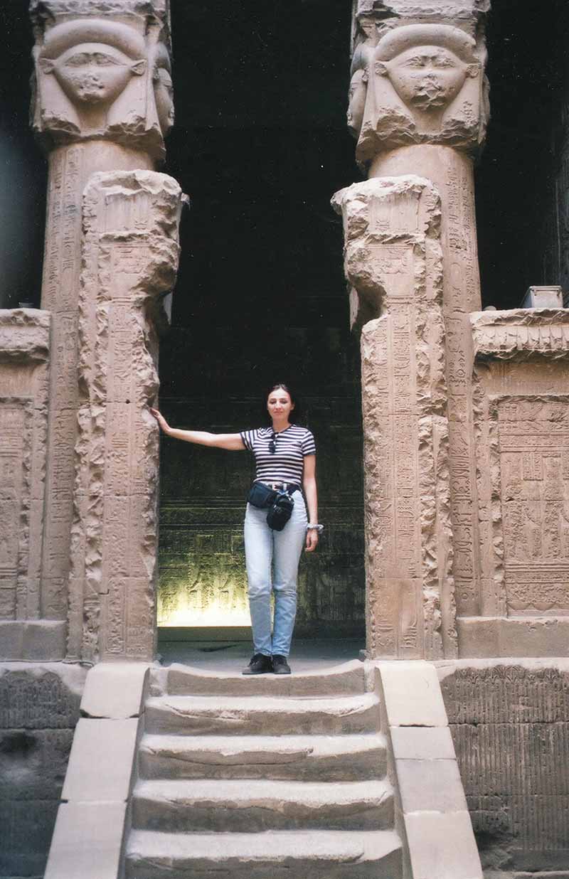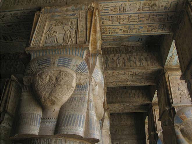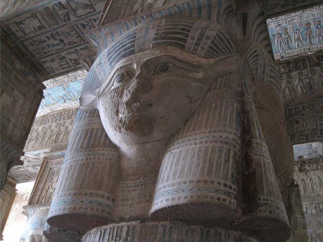 Her beauty also lead to her being symbolically depicted by mirrors. Hathor's image was also often used to form the capitals of columns in Egyptian architecture.
