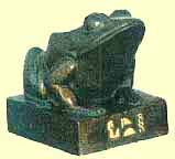 Women often wore amulets of her during childbirth, which depicted Heqet as a frog, sitting in a lotus. As goddess of the last stages of birth, she was considered the wife of Khnum, who formed the bodies of new children on his potter's wheel.