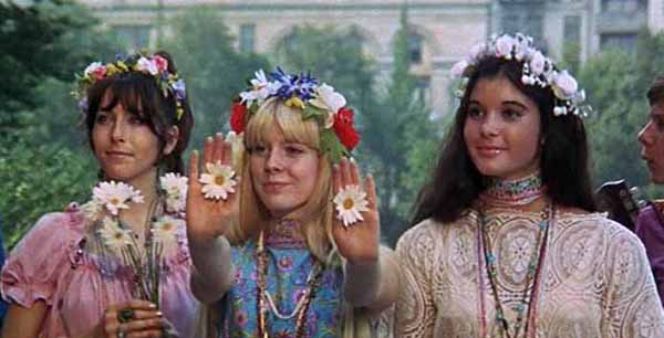 Popular films depicting the hippie ethos and lifestyle include Woodstock, Easy Rider, Hair, The Doors, Across the Universe, Taking Woodstock, and Crumb.