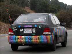 The VW Bus is usually known as the counterculture/hippie symbol; a peace symbol is usually painted where the VW logo would otherwise be seen. Because of its low cost (during the late sixties), it was revered as a utilitarian vehicle. A majority of buses were usually repainted with graphics and/or custom paint jobs, this was the predecessor of the modern-day art car. Although not as common they did also use the Chevrolet Corvair cars and vans.