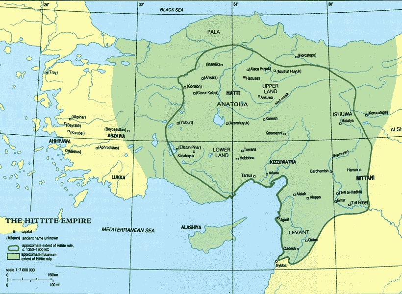 Known in modern times as the Hittite Empire, it reached its height during the mid-14th century BC under Suppiluliuma I, when it encompassed most of Anatolia and parts of the northern Levant and Upper Mesopotamia.