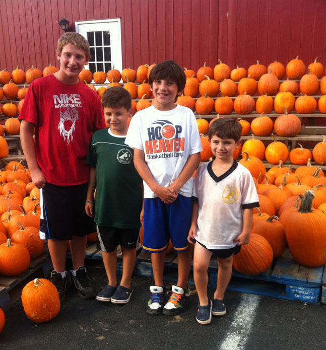 Michael, Matthew, Dylan, and Noah enjoy the pumpkin patch.
