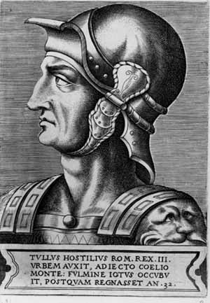 Tullus Hostilius (r. 673 BC 642 BC) was the legendary third of the Kings of Rome. He succeeded Numa Pompilius, and was succeeded by Ancus Marcius. Unlike his predecessor, Tullus was known as a warlike king. Tullus Hostilius was the grandson of Hostus Hostilius who had fought with Romulus and died during the Sabine invasion of Rome.