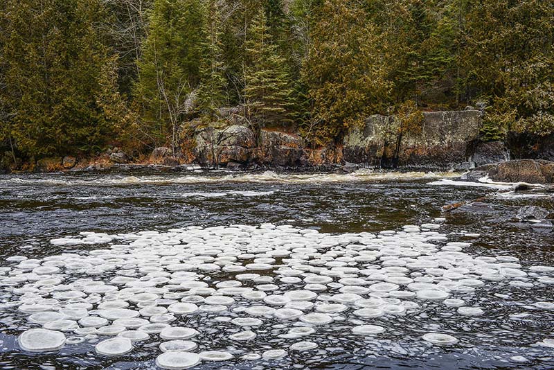 The phenomenon is limited strictly to bodies of water such as rivers, lakes, or oceans. Once those bodies of water are cold enough, the chunks of ice that have started to form will knock against each other forming elliptical-shaped discs with rounded edges.