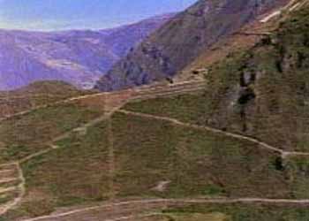 The religious and societal center of Inca life was contained in the middle of the sprawling fortress known as Sacsahuaman. Here was located Cuzco, 'The Naval of the World' [we call it the Solar Plexus] - the home of the Inca Lord and site of the sacred Temple of the Sun. At such a place the immense wealth of the Inca was clearly evident with gold and silver decorating every edifice. The secret of Inca wealth was the mita. This was a labor program imposed upon every Inca by the Inca ruler. Since it only took about 65 days a year for a family to farm for its own needs, the rest of the time was devoted to working on Temple-owned fields, building bridges, roads, temples, and terraces, or extracting gold and silver from the mines. The work was controlled through chiefs of thousands, hundreds and tens.