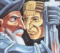 In 1541 the Wheel of Fortune turned against Francisco Pizarro, and the conquistador reaped a bit of what he had sown. After the fall of Cuzco in 1533, Pizarro and his brother cut their rival, Diego de Almagro, out of much of the booty. By way of compensation, Francisco offered him Chile, and the Spaniard marched off in hopes of conquest and gold. He returned two years later, having found no fortune, and helped suppress Manco. His quarrel with the Pizarros led to a battle between their factions at Las Salinas on April 26, 1538. Captured, the defeated Almagro was garroted on Hernando's order. Francisco, now governor, later stripped Almagro's son, also named Diego, of lands leaving him bankrupt.