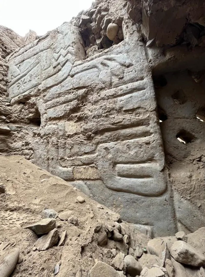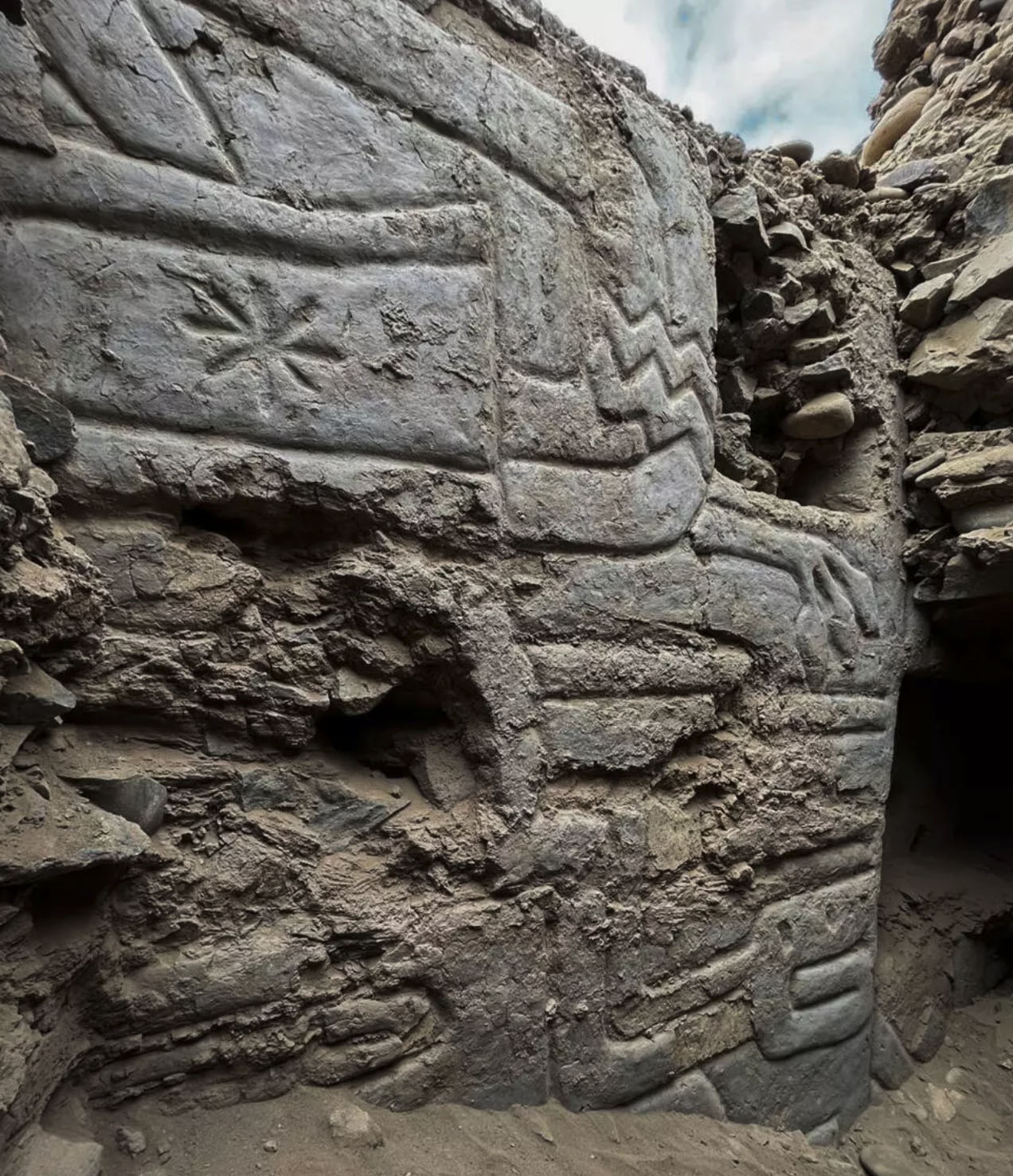A multicolored mural (petroglyph) discovered in Peru is shedding light on pre-Inca coastal artistic traditions. Archaeologists have uncovered a massive 3D mural on the northwest coast of Peru. Blue, yellow, red and black paints still adorn the 3,000-year-old mural, which is decorated with fish, stars and mythological beings.