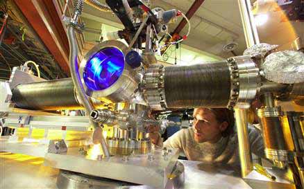 More recently, the lab's BaBar collaboration has shed light on why matter won out over antimatter, and found the lowest-energy example of weird subatomic stuff known as "bottomonium." But BaBar's days are numbered: As the Large Hadron Collider takes center stage in particle physics, the detector system at SLAC that yielded such fundamental research (known as the B Factory) is being closed down. That's been one of the reasons why SLAC has laid off 225 of its 1,600 employees over the past year. Budget cuts forced by Congress were another factor.