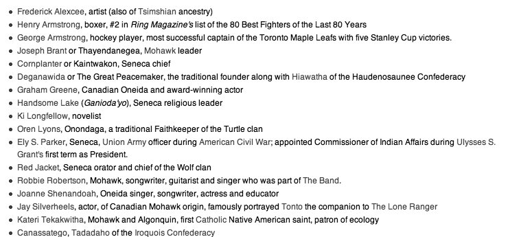 Notable Senecas in history include Red Jacket, Cornplanter, Guyasuta, Handsome Lake, and Ely S. Parker.