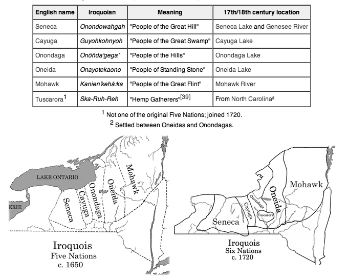 In 1720 the Tuscarora fled north from the European colonization of North Carolina and petitioned to become the Sixth Nation. This is a non-voting position but places them under the protection of the Confederacy.