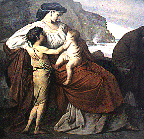 Jason for a time kept his assailants at bay with his sword and shield, till, finding their numbers overwhelming, he resorted to the charm which Medea had taught him, seized a stone and threw it in the midst of his foes. They immediately turned their arms against one another, and soon there was not one of the dragon's brood left alive. The Greeks embraced their hero, and Medea, if she dared, would have embraced him too.