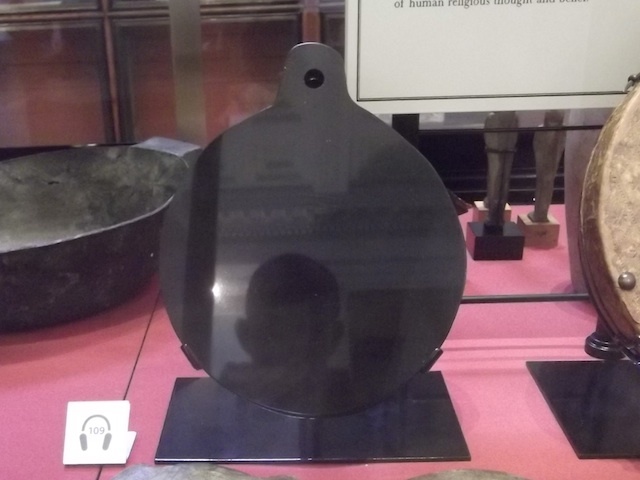 Dee's Speculum or Mirror (an obsidian Aztec cult object in the shape of a hand-mirror, brought to Europe in the late 1520s), which was once owned by Horace Walpole.