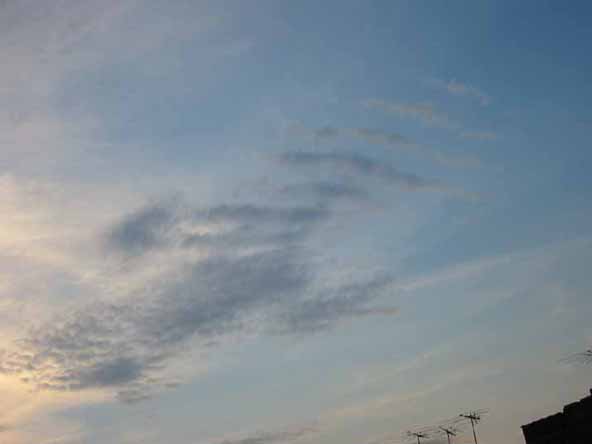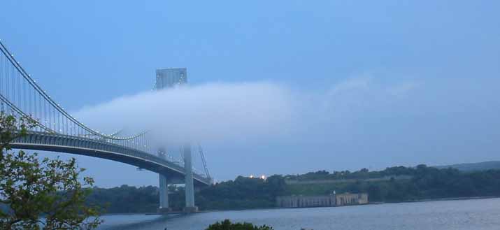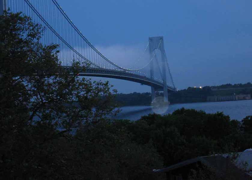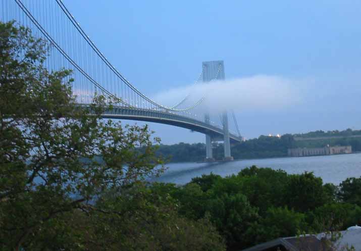 As Pat and I sat and talked, my attention was suddenly riveted to the bridge just outside. There before us was a strange cloud formation over the Verrazano Bridge. I am certain there is a scientific explanation for the formation, but in this case, I was looking for the metaphors. In the 13 years I have lived here, I have never seen anything like this. Unlike the other clouds that moved above us at this time, this formation remained from 8:00-8:45 pm with slight variations, almost like a Lenticular Cloud. I grabbed my digital camera, walked out on the terrace with Pat, and began to take pictures.