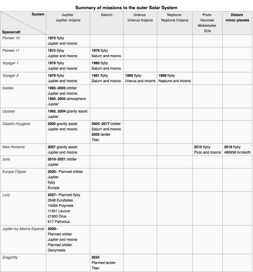 Jupiter has been explored on several occasions by robotic spacecraft, most notably during the early Pioneer and Voyager flyby missions and later by the Galileo orbiter. The most recent probe to visit Jupiter was the Pluto-bound New Horizons spacecraft in late February 2007. The probe used the gravity from Jupiter to increase its speed. Future targets for exploration in the Jovian system include the possible ice-covered liquid ocean on the moon Europa.