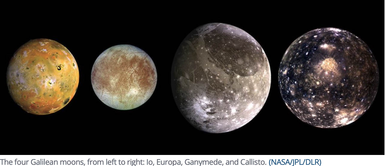 The Galilean moons are by far the largest and most massive objects to orbit Jupiter, with the remaining 91 known moons and the rings together comprising just 0.003% of the total orbiting mass.