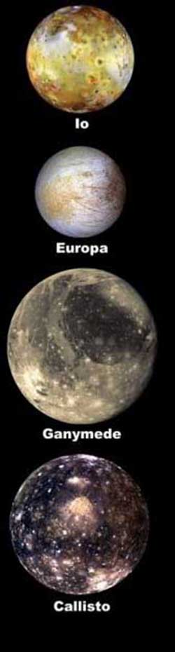 All together, Jupiter's moons form a satellite system called the Jovian system. The most massive of the moons are the four Galilean moons: Io, Europa, Ganymede, and Callisto, which were independently discovered in 1610 by Galileo Galilei and Simon Marius and were the first objects found to orbit a body that was neither Earth nor the Sun.