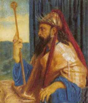 Saul (reigned 1047 - 1007 BC?) was the first king of the united Kingdom of Israel according to the Hebrew bible. He was anointed by the prophet Samuel and reigned from Gibeah. He committed suicide during a battle with the Philistines at Mount Gilboa, during which several of his sons were also killed. The succession to his throne was contested by his surviving son Ish-bosheth and the famous David, who eventually prevailed. The main account of Saul's life and reign is found in the Book of Samuel.
