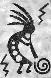 Kokopelli is a fertility deity, usually depicted as a humpbacked flute player (often with a huge phallus and antenna-like protrusions on his head), who is worshipped by many Native American tribes in the Southwestern United States.