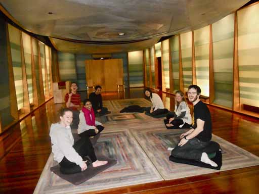 In laughter meditation there are some similarities to traditional meditation. However, it is the laughter that focuses the person to concentrate on the moment. Through a three stage process of stretching, laughing and or crying, and a period of meditative silence. In the first stage, the person places all energy into the stretching every muscle without laughter.