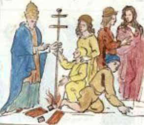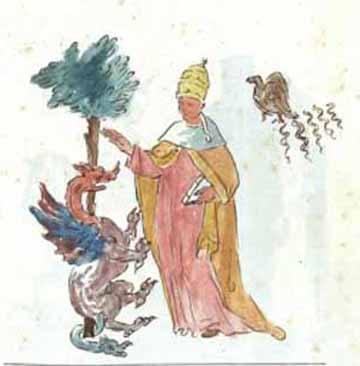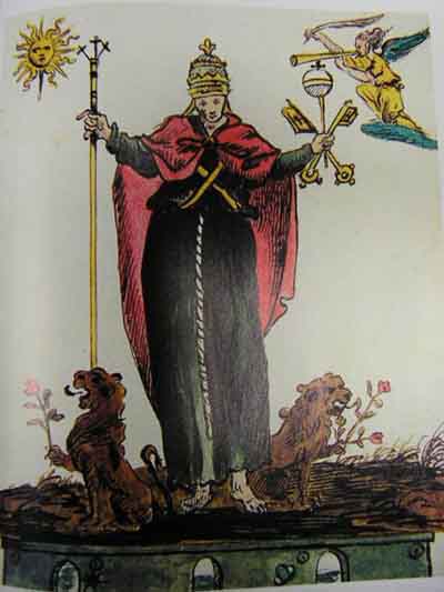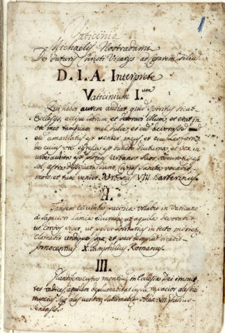 The Lost Book of Nostradamus discusses a collection of eighty watercolor images compiled as an illustrated codex. This version of the well-known Vaticinia de Summis Pontificibus of the 13th-14th century was discovered in 1994 by the Italian journalists Enza Massa and Roberto Pinotti in the Biblioteca Nazionale Centrale di Roma (Central National Library) in Rome, Italy. The document can be found in the library under the title Fondo Vittorio Emanuele 307. A postscript by Carthusian librarians states that the book had been presented by one Brother Beroaldus to Pope Urban VIII (1623-1644). Another note suggests that the images were by the French seer Nostradamus (1503-1566), and had been sent to Rome by his son Cesar de Nostredame as a gift.