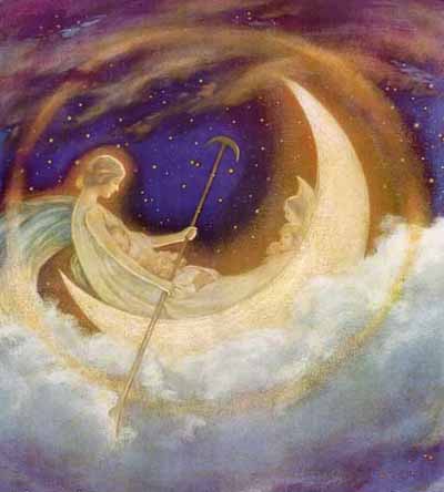 The Moon is the only natural satellite of the Earth and is the closest planetary (it's not really a planet, but it's influences are strongly felt) object to us. The moon is without water and the only light it receives is reflected from the Sun. The light which repeats itself in phases every 28 days is caused by the Moons orbit around Earth. Because it is always near us, it represents are'shadow self', our changeable moods and feelings. The relationship betweenthe Moon and the Sun are especially important in Natal charts. Together these two objects represent the anima:conscious (sun) and animus:subconscious (moon) parts of our self according to Carl Jung.