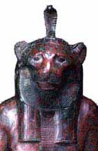 Maahes (also spelled Mihos, Miysis, Mios, Maihes, and Mahes) was an ancient Egyptian lion-headed god of war,whose name means "he who is true beside her". He was seen as a lion prince, the son of the goddess Bast in Lower Egypt and of Sekhmet in Upper Egypt and shared her natures. His father was told to be a human unaware of Bastet's/Sekhemet's intentions to conceive. Maahes was a deity associated with war and weather, and was considered the protector of matrilineality and of the high priests of Ammon, as well as that of knives, lotuses, and devouring captives. His cult was centred in Taremu and Per-Bast.